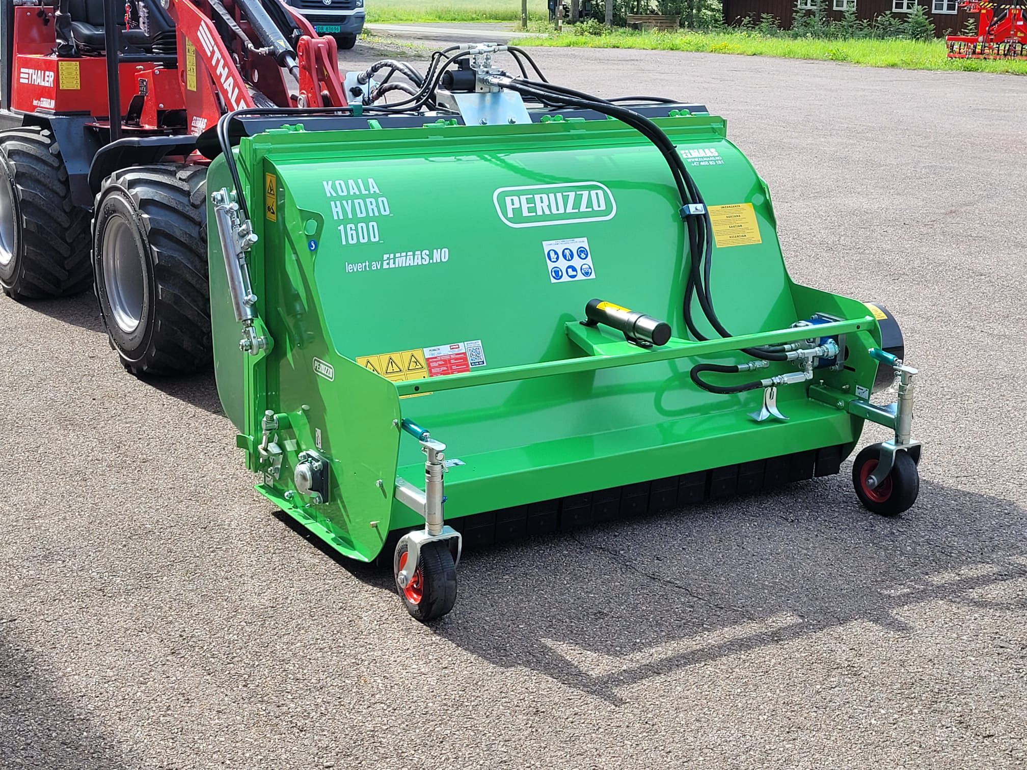 Peruzzo KOALA HYDRO 1200 är en frontmonterad slaghack för lätta/medeltunga lastare som behöver ren klippbild, god sikt och hög precision runt hinder. Hydrauldriften gör installationen enkel – koppla tryck/retur samt dräneringsledning direkt till tank för att skydda hydraulmotorn. Följ flödesrekommendationen (25–35 L/min) och begränsa flödet vid behov med flödesventil eller motorns varvtal för att undvika övervarvning. Klippaggregatet har paddelformade slagor och bakvals för jämn höjd; med vertikalskärknivar som tillval kan du riva filt/thatcḥ. Rekommenderad hydraulolja LI/46.