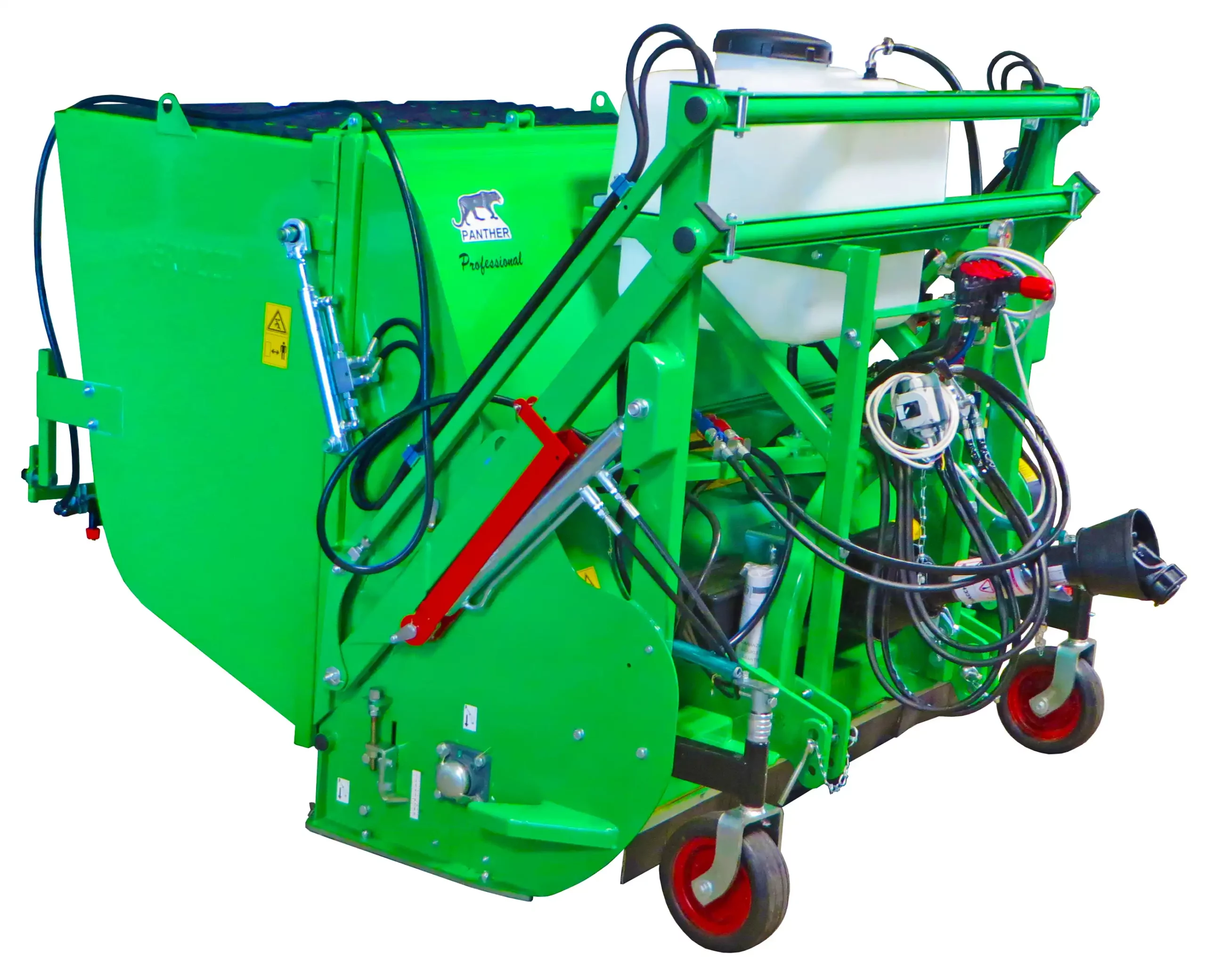 Peruzzo PANTHER Professional 1600 är en avancerad slaghack med uppsamlare och hög tömning, vilket gör det möjligt att tömma direkt i container eller lastbil. Med 1600 mm arbetsbredd och 1500 liters uppsamlare kombinerar maskinen kapacitet och flexibilitet för professionell drift. Paddelslagor finfördelar gräset och leder det till uppsamlaren, medan bakvals och höjdjusterbara framhjul säkrar en jämn klipphöjd även på ojämna underlag. Hög tömning på ca 1,83 meter gör att maskinen är särskilt lämplig för kommuner och entreprenörer som vill effektivisera logistiken. Med tillval som vertikalskärknivar kan maskinen även riva mossa och filt samtidigt som uppsamling sker.